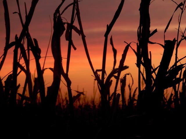 The red glow was almost gone from the sky when Danny turned onto Carl’s street. On his right was a row of new houses with their lights just coming on. Across the street on his left was nothing but farmland, stretching for miles and miles. On the horizon, a single red light at the small airport far away slowly blinked on and off. In between was the cornfield. It had always been there, as long as Danny could remember. Probably longer than Carl’s house, longer than any of the houses on this street. They’d never played in that cornfield or explored it. There was something about it that kept them on their side of the fence, something that was more of a feeling than anything they could put a name too. Until they did.