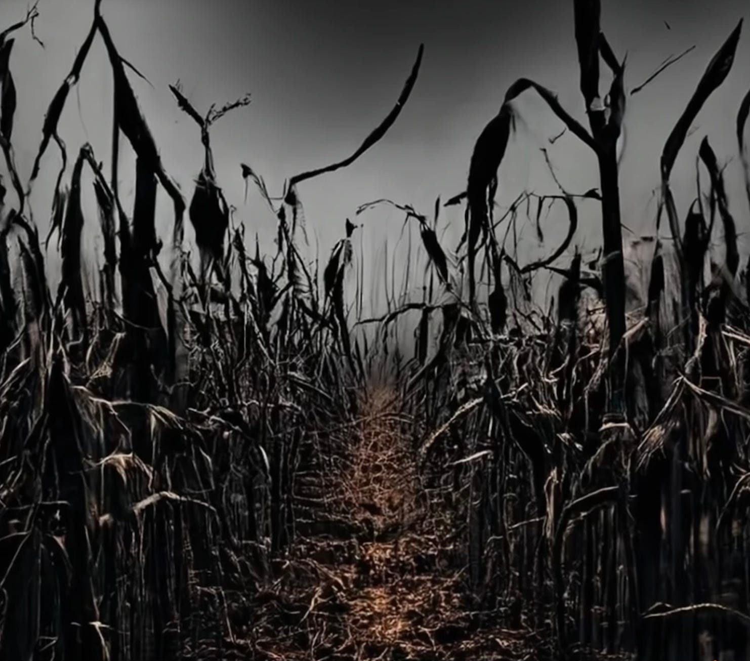 A cool wind rose up from the far side of the field and passed over the corn, setting it into motion. A loud rustling and rattling sound washed over Danny like the sound of the ocean. Stalks and tassels waved and nodded like rows of people bowing down and waving their hands. All except one. One dark shape stood tall and still among all the others. A cloud passed over the moon, throwing the cornfield into darkness. Danny strained his eyes to see the dark thing that was standing there, not moving. A feeling came over him that he didn’t like, a feeling that the thing was watching him. Then he saw it take a step forward.
